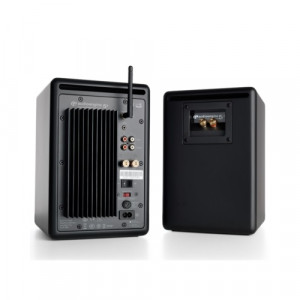 • Wbudowane wzmacniacze mocy owinięte w ręcznie budowanych drewnianych szafach