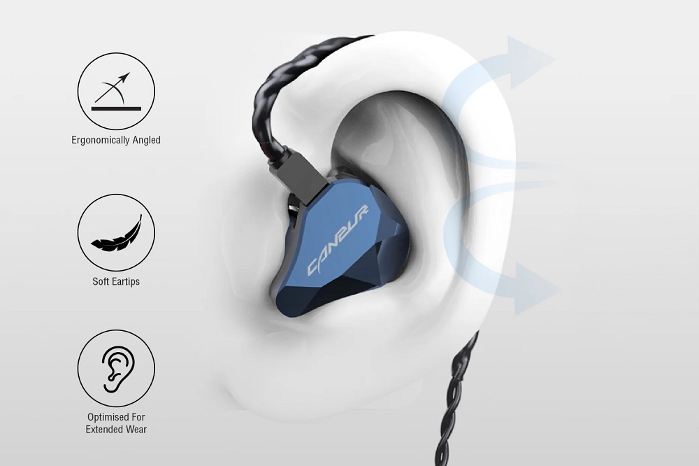 Kształt kopułek i kątą wychylenia tuleki Deep Blue został opracowany po analizie dużej bazy skanów ludzkich uszu. Dzięki temu przystępne cenowo słuchawki Canpura pewnie spoczywają w kanałach słuchowych i można korzystać z nich komfortowo nawet przez wiele godzin.