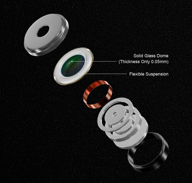 Zarówno Lan 2 Ref, jak i Lan 2 Pop wyposażone są w zupełnie nowy przetwornik dynamiczny z membraną ze szklaną kopułką. Ta solidna szklana kopułka ma grubość zaledwie 0,05 mm. Jest wytwarzana przy użyciu precyzyjnej formy i specjalistycznego procesu obróbki szkła. Przetwornik zapewnia wyjątkowe rozszerzenie pasma wysokich częstotliwości i prawdziwą rozdzielczość hi-fi, gwarantując doskonałą wydajność przy niskich zniekształceniach i szerokim zakresie dynamiki.