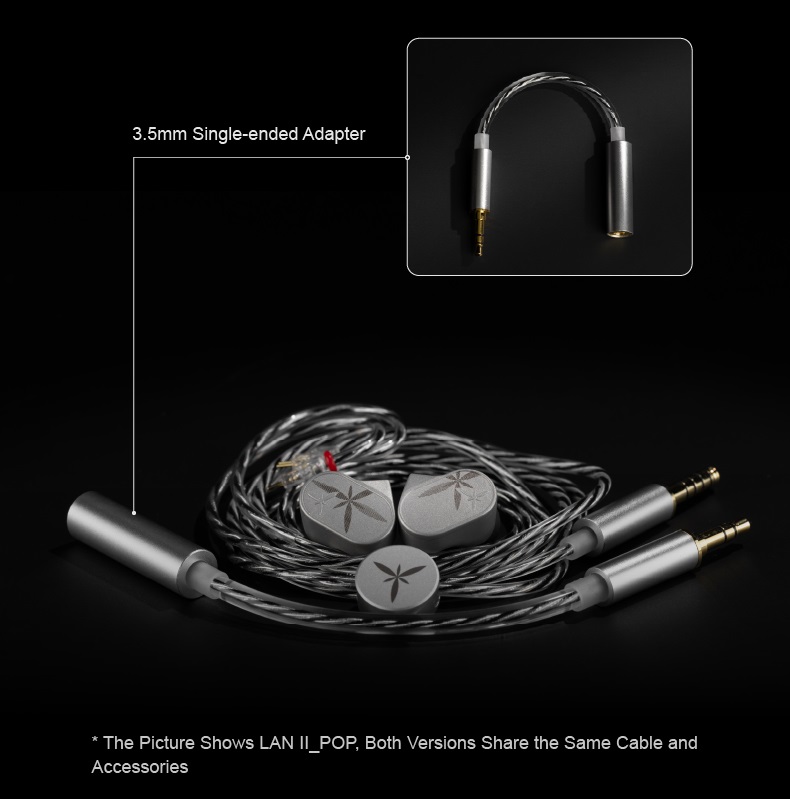 Moondrop Lan 2 jest dostępny w dwóch wariantach, każdy z indywidualnymi opcjami strojenia: Moondrop Lan 2 Ref i Moondrop Lan 2 Pop. Jak można się domyślić, Lan 2 Ref oferuje referencyjną jakość dźwięku ze skoncentrowanym zakresem średnich i wysokich częstotliwości. Charakteryzuje się wyjątkową szczegółowością, czystą prezentacją i uwydatnionymi detalami instrumentów. Moondrop Lan 2 Pop stosuje inne podejście do strojenia; charakteryzuje się bardziej skoncentrowanym zakresem średnich i niskich tonów oraz wokali, co gwarantuje mocne niskie tony i bardziej wyraziste wokale. Teraz możesz wybrać strojenie, które odpowiada Twoim upodobaniom i preferencjom odsłuchowym.
