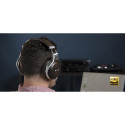 ergonomiczną konstrukcję oraz miękkie, skórzane pady nauszne wypełnione pianką