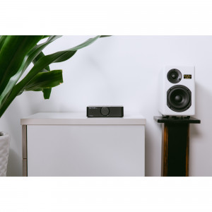 Na górze znajduje się przycisk wyciszania oraz przycisk przełącznika wejść, a z przodu duże pokrętło regulacji głośności. Łatwa, intuicyjna obsługa, to zdecydowany atut urządzenia.