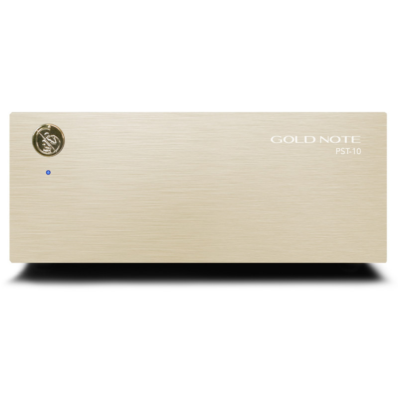 Czysta moc generowana przez ten zasilacz pozwala na redukcję zakłóceń, zapewnia lepszą dynamikę i wyeksponować najdrobniejsze detale zmieniając każdy odsłuch w wyjątkowe wydarzenie. Zaprojektowany specjalnie dla gramofonów Gold Note, PST-10 posiada 4-stopniowy układ toru zasilania i 4 niskoszumowe regulatory napięcia. Zasilacz wykorzystuje 4 transformatory, z których 3 są dedykowane dla zasilacza, a 1 dla filtra indukcyjnego. PST-10 jest dostarczany z kablem zasilającym o długości 1,5m, a przewód jest wykonany ze srebra.